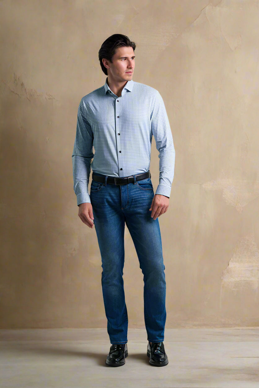 The APEX – Dark Navy Smart Micro Geo Shirt from our Apex Collection features a clean, structured profile with a soft hand-feel, ideal for everyday wear and versatility across seasons.