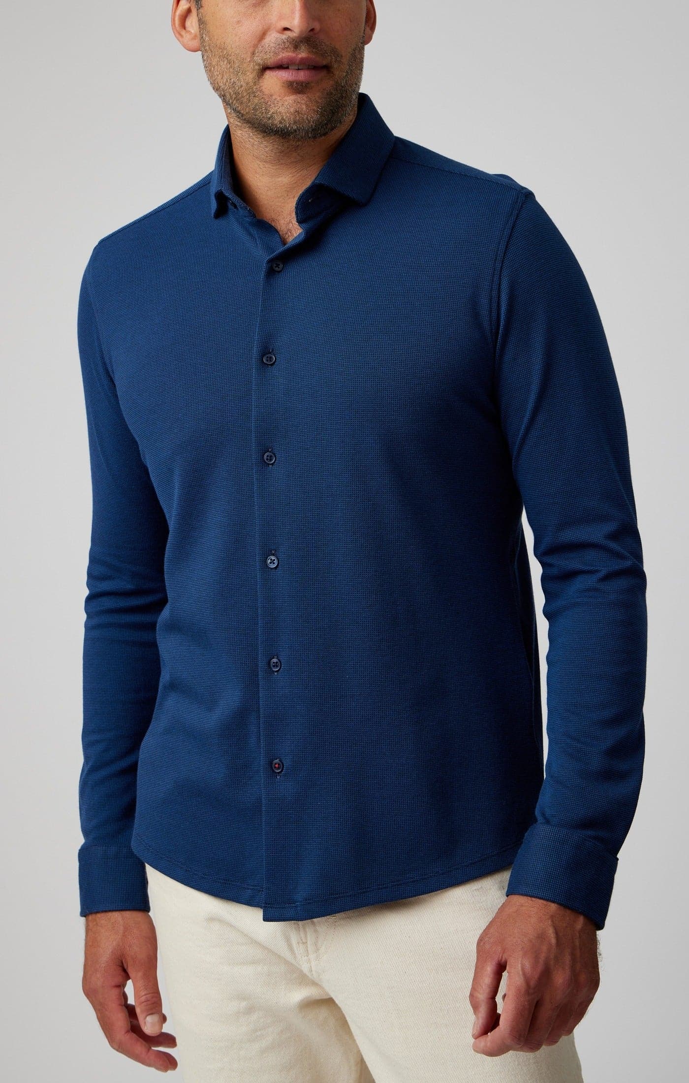This season, enjoy our T-Series pique shirts in a contemporary blue and a classy all-black option. Perfect for layering, they can be dressed up or down with ease, making them a true year-round staple.